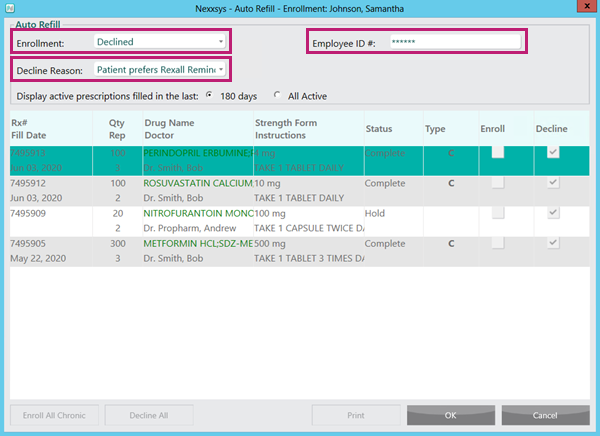 - Select Enroll/Decline beside Auto Refill.