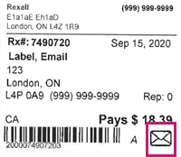If the patient is enrolled in the Rexall Reminders program, one of the following icons appears on the Privacy Label, depending on their preferred method of communication.