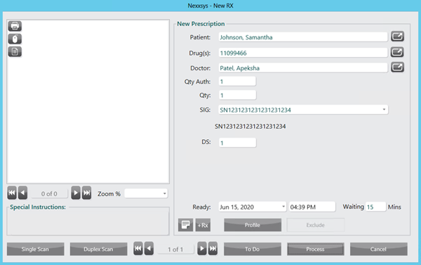 - Select New. A blank New RX window appears.