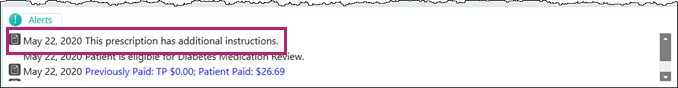 - Select OK. The Additional Instruction Label window closes. A notice appears in the Alerts box in Rx Detail stating the prescription has additional instructions.