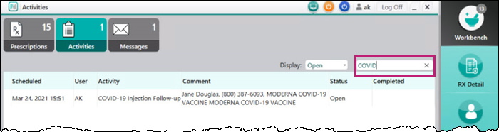 From the Workbench, select the Activities dashboard.