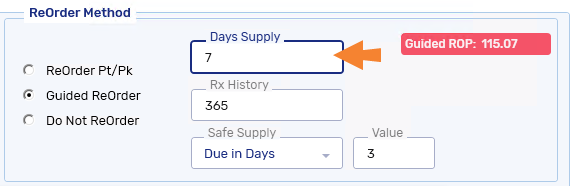 In the Days Supply field, enter the minimum days worth of stock you want to keep on your shelves (between 1 and 365).