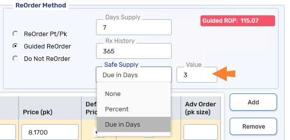 In the Safe Supply field, select the amount of buffer you want to add to the calculation.