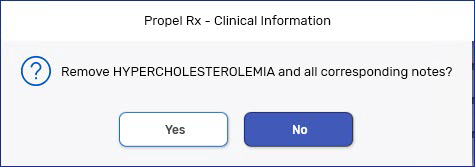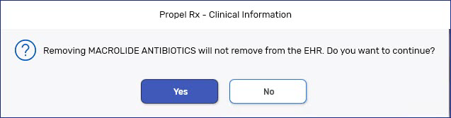 Once Allergies or Conditions are sent to the EHR, they cannot be removed from the EHR. You can, however, remove the record locally in Propel Rx. You may choose to do this if these records are no longer applicable, and you want to exclude them from local interaction checking.