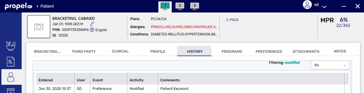A record is added to the Patient Folder History tab to document that the keyword was updated.