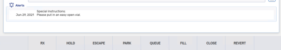 When a PhotoRx is opened in Rx Detail, any special instructions provided by the patient display in the Alerts section.