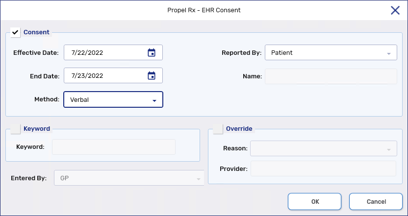 Select EHR Consent. The EHR Consent window opens.