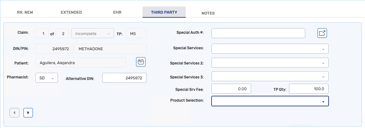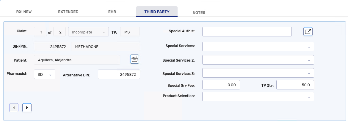 If billing per mg and adjudicating to a Third Party, select the Rx Detail Third Party tab. Confirm the TP Qty reflects the unit of measure accepted by the Third Party plan.