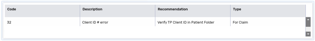 A Client ID error means the patient's NMS PHN/Identity # is incorrect or missing. Go to the Patient Folder Third Party tab and correct the PHN/Identity # field. The number must correspond to the selected Identity Code.