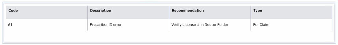 A Prescriber ID error means the prescriber's license number is incorrect or missing. Go to the Prescriber Folder and correct the License # field.