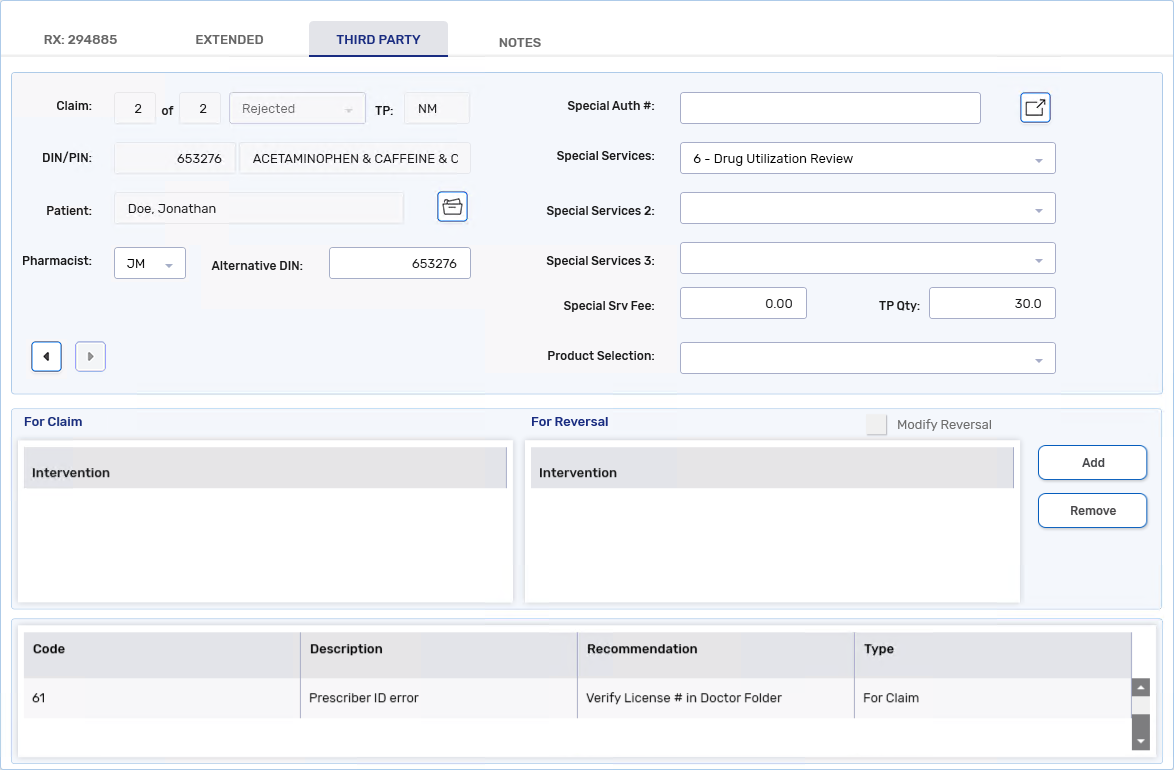 Select the Third Party tab in Rx Detail.