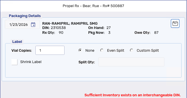 When a prescription is Filled, Propel Rx checks the Qty entered for the prescription against the On Hand of the drug. If there is not enough On Hand to fulfill the prescription, the Owe Balance window opens automatically in Rx Detail. This allows you to create Owe Balances for Monitored drugs conveniently at the Data Entry step.