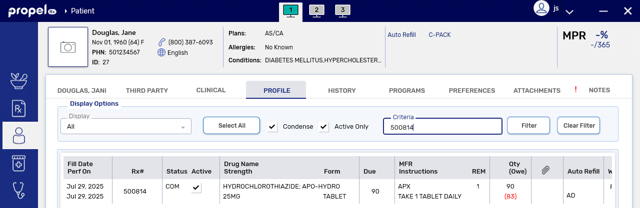• From the Patient Profile, select the prescription and then Rx > Owe Balance.