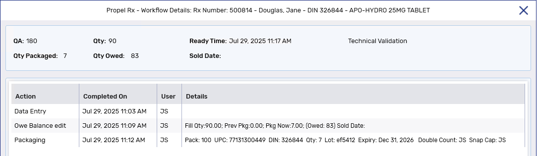 As a prescription moves through Workflow, you will have the option to create and edit an Owe Balance if needed. The Owe Balance will be assigned the same prescription number as the initial fill but processed separately from the initial fill.