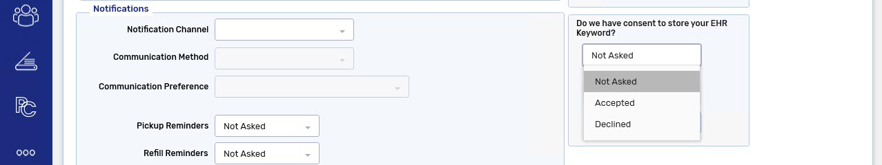 In the section labelled "Do we have consent to store your EHR keyword?", choose Accepted.