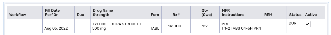Select RX > Add DUR.