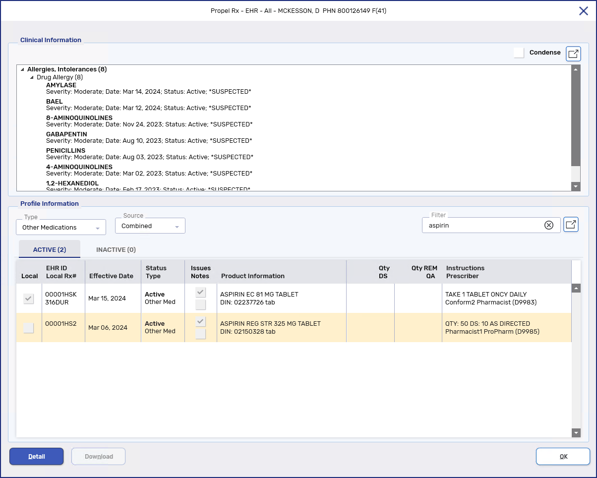 If a DUR is found locally, you can transmit updates for certain fields to the EHR. If a DUR is not found locally (i.e., added by another pharmacy), you can add a note from the EHR Profile for other healthcare professionals to see.