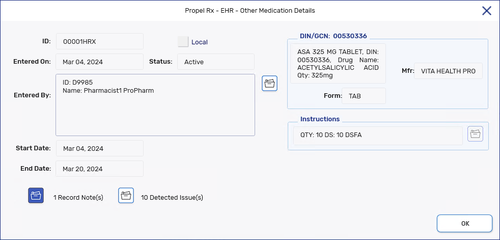 Select Detail Rx. The Other Medication Details window opens.