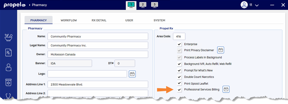 To use the Professional Services module, it must be enabled in Pharmacy Preferences first. Once enabled, other options such as List Maintenance > Professional Services and Rx > PFS > Prof Services will be available.
