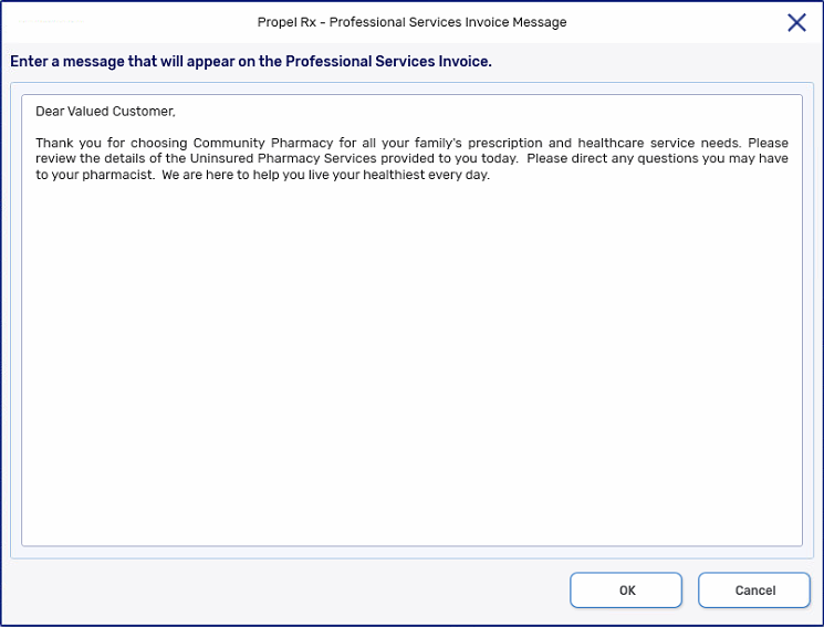 Type a personalized message. The message that's typed here will appear on the Professional Services Invoice for patients.