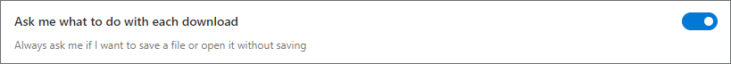For Ask me what to do with each download, drag the pointer to the right. This will turn on the prompt for each download.
