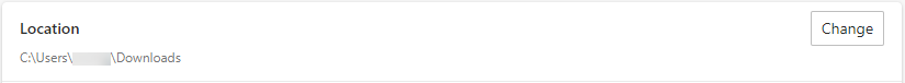 The default download file path is displayed under Location. If desired, select Change to choose a different default location.