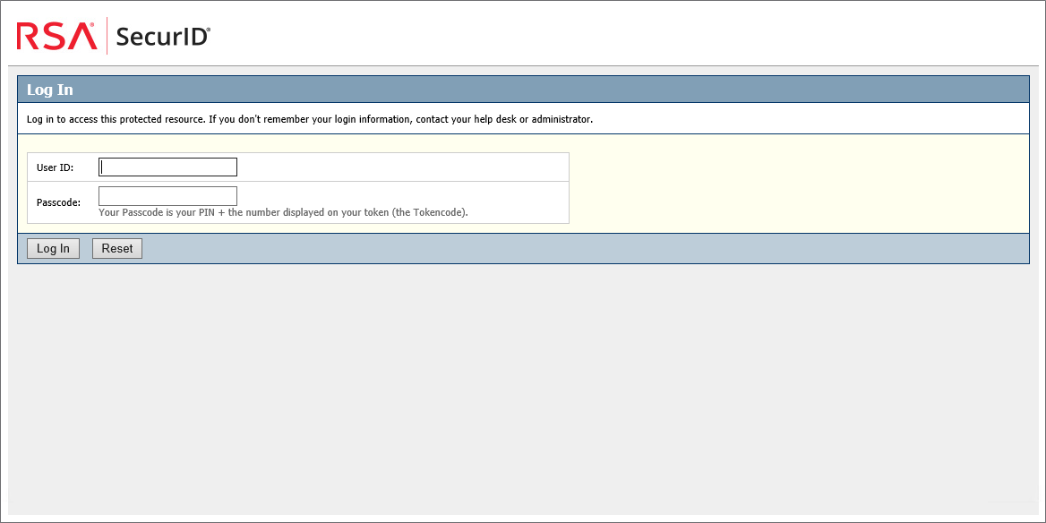 The RSA SecurID Login website launches in your browser. Alberta Netcare portal is protected by RSA SecurID. This is the first level you must log into to gain access to the Netcare portal.