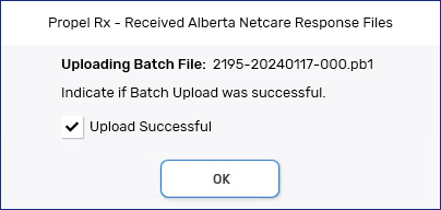 In Propel Rx, select the Upload Successful checkbox in the Received Alberta Netcare Response Files window.