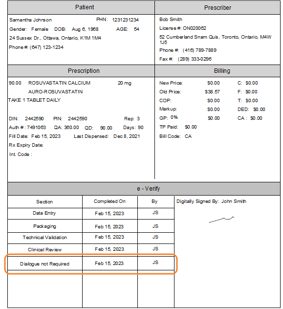 When E-Dialogue is set to New, only the Dialogue for the witness dose appears in the Patient Clinical Notes. Only the witness dose e-File copy has the Dialogue Completed On and By fields populated.