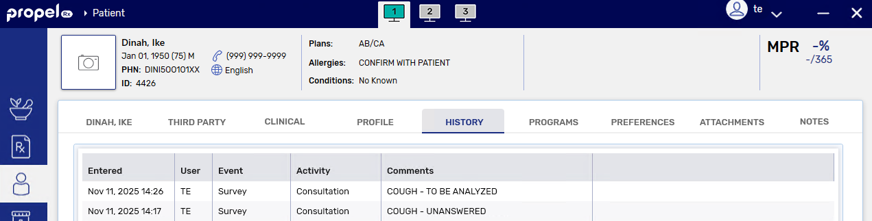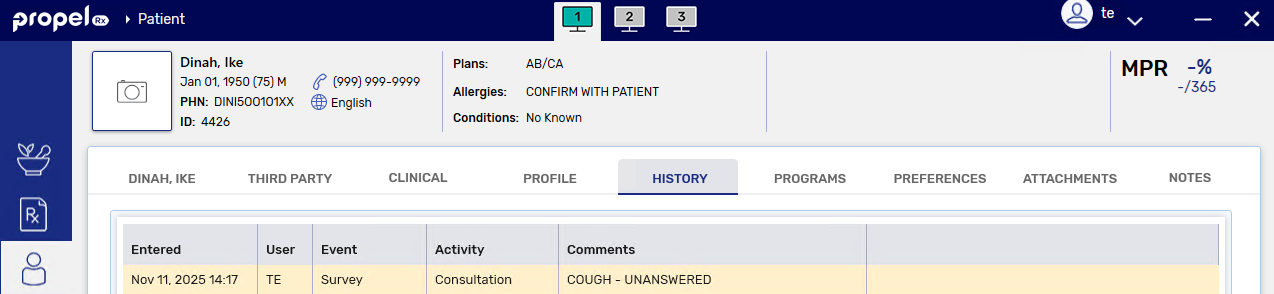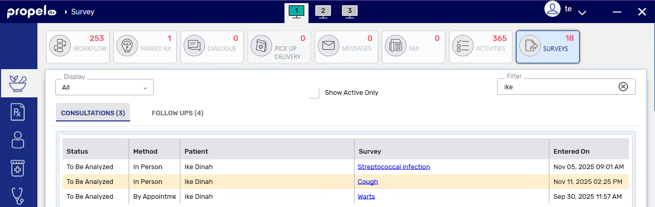A consultation survey can be sent from Propel Rx from any one of the following locations. Select the dropdowns to learn more.